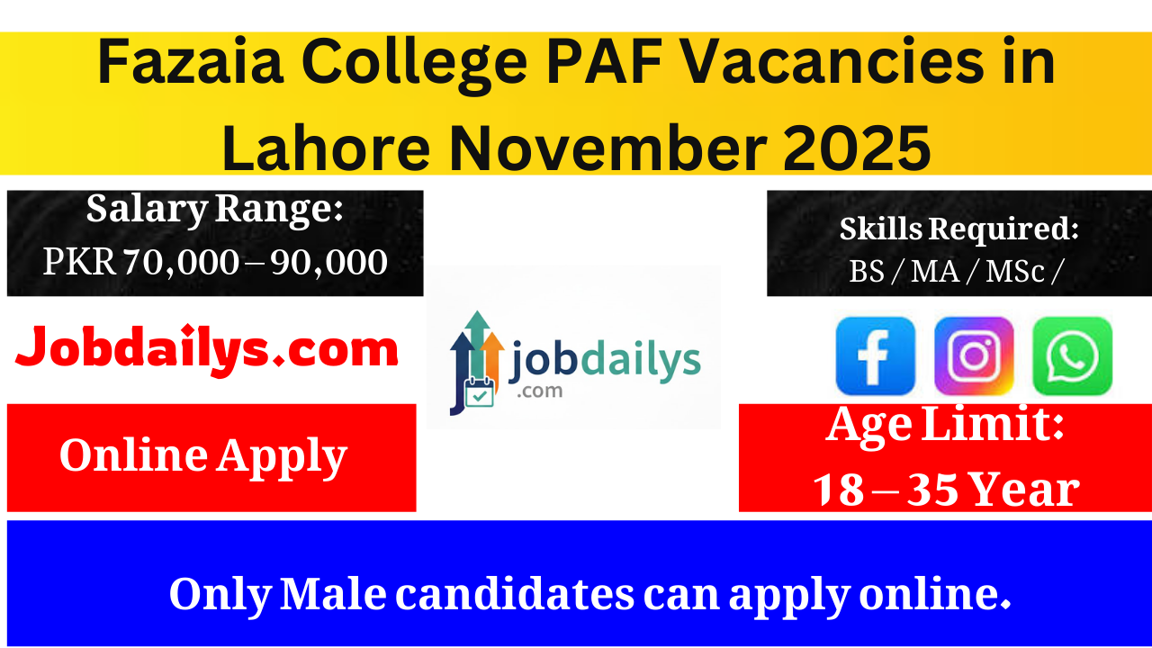 Fazaia Schools and Colleges have announced the latest Fazaia College PAF Vacancies in Lahore for November 2025, inviting skilled, confident, and dedicated professionals to join one of Pakistan’s most reputable educational networks. Candidates will work in a disciplined, growth-oriented, and professional environment supported by the Pakistan Air Force. Positions are available for Head Mistress (HM), … Read more