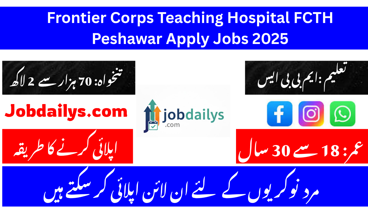 Frontier Corps Teaching Hospital FCTH Peshawar Apply Jobs 2025